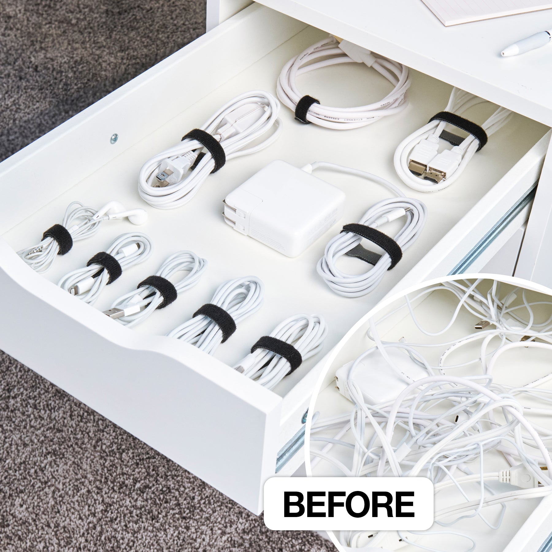 Our mouths water when we see a delicious plate of pasta. But we cry our eyes out when we see a drawer full of cable spaghetti. Quickly go from tangled to tidy with our Self-Gripping Cable Ties. They’re perfect for organizing your cords, cables, wires, and more.